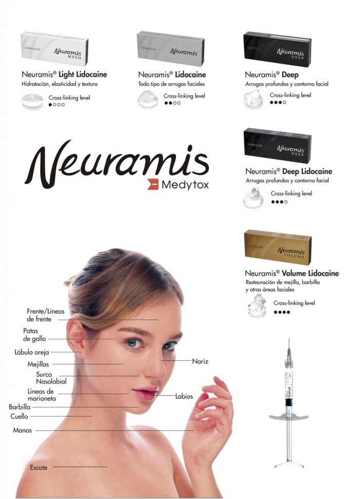 Neuramis is CE certified in Korea and Europe, and can be used to eliminate wrinkles and wrinkles, as well as as as as a facial compatibilizer for soft tissue filling.