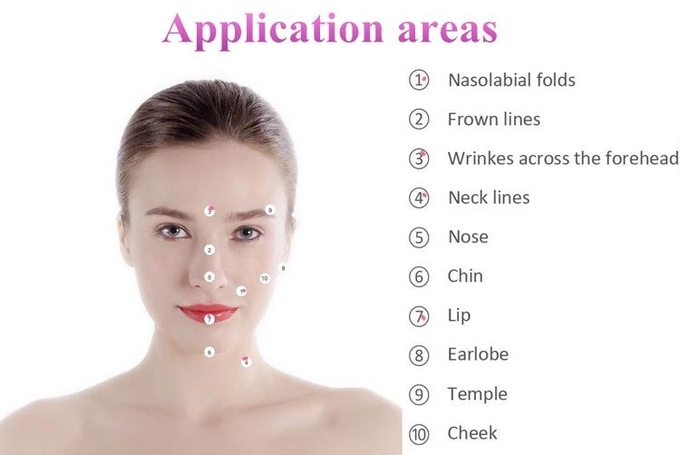| Where to inject | Moderate wrinkes,such as glabellar,oral commissures Lips:fullness,pouting and vermilion border |