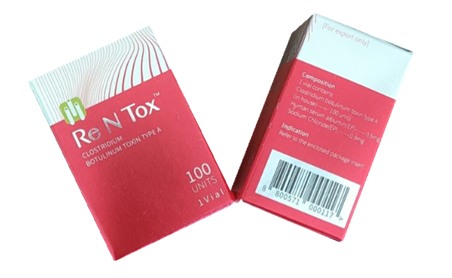 Rentox 100 units is an innovative drug (botulinum toxin) type A Premium Class, developed by the South Korean company Pharma Research Bio. It is presented as a lyophilized white powder for injection in a colorless transparent vial.